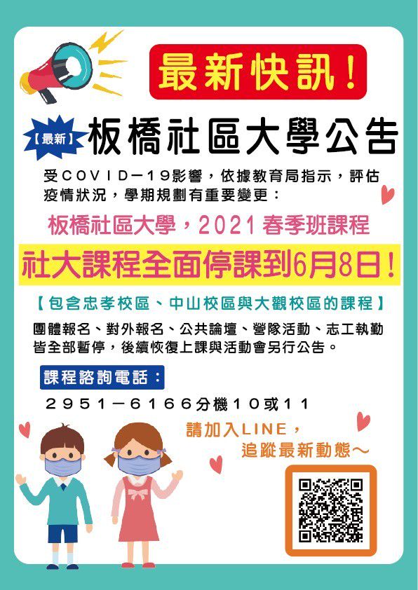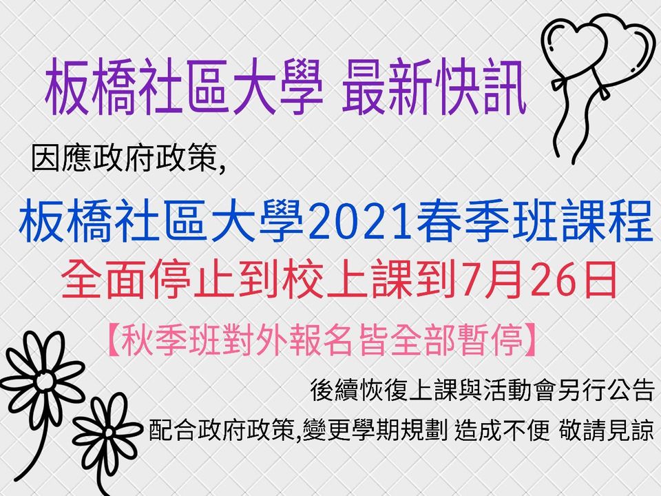 新北市板橋社區大學 板橋社區大學公告 因應政府最新政策 Facebook