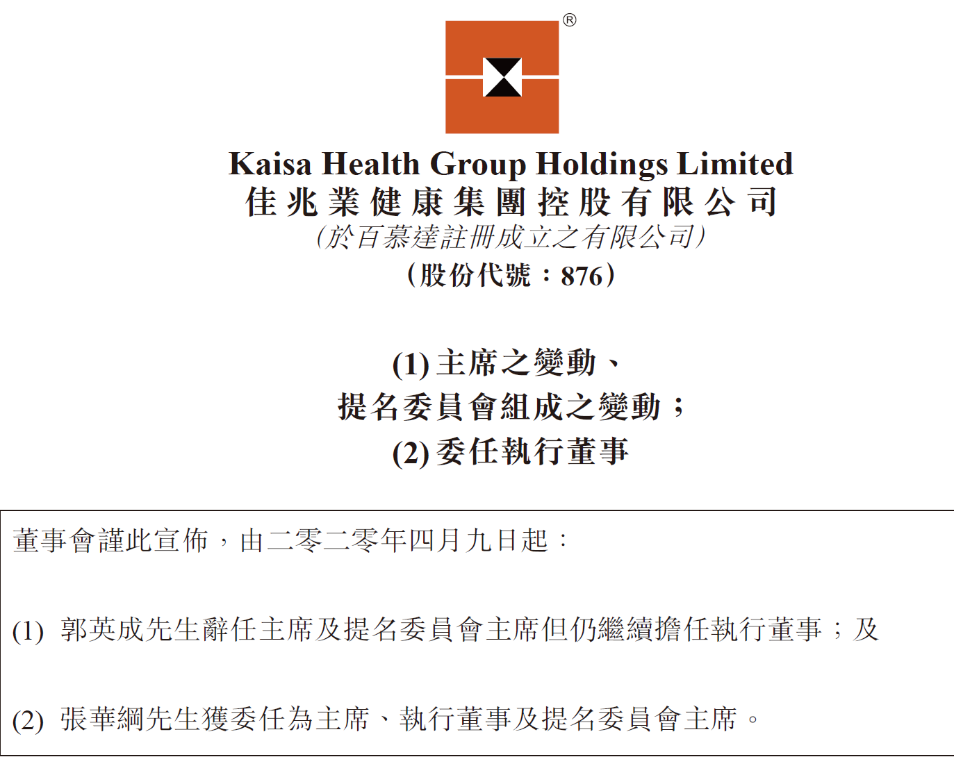 佳兆业健康郭晓欣获委任执行董事及联席总裁 09-21 佳兆业健康 00876HK授出8000万份购股权 08-26 佳兆业健康向三名合资格参与者授出8000万份购 08-26 佳兆业健康 00876HK中期纯利6067万元 亏 08-25. 佳兆业健康在2020年年报中指出张华纲在业内被称为中国康养第一人引入张华纲是佳兆业健康在大健康行业上的重要布局 而郭英成交权的时间点也较为微妙在让贤张华纲的同年郭晓群和郭晓亭分别进入了佳兆业集团和佳兆业美好的董事会. 披露易显示11月5日一早 佳兆业 佳兆业健康00876HK 佳兆业美好 佳兆业资本00936HK 纷纷发布短暂停牌公告.